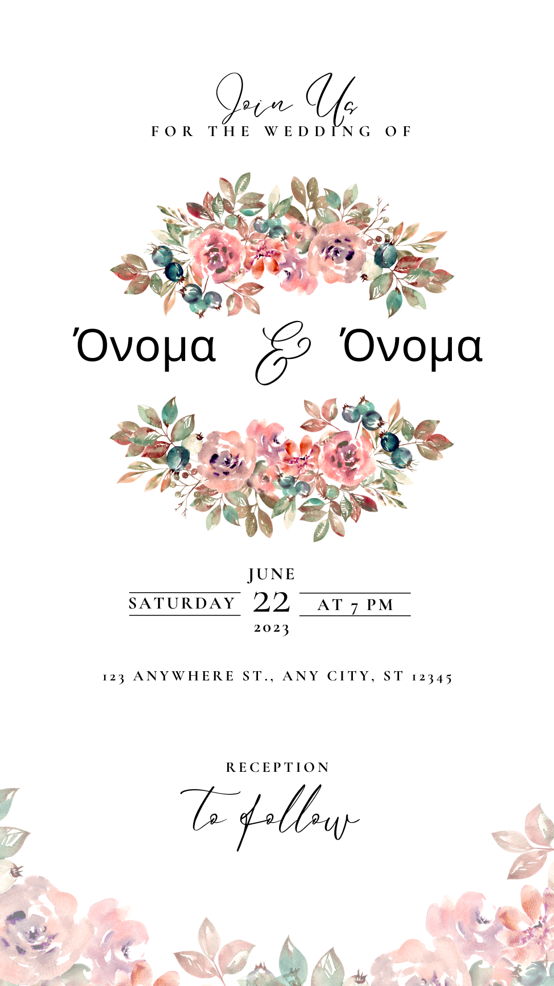Ηλεκτρονικό Προσκλητήριο Γάμου Βίντεο - Ρομαντικό Floral Wedding Invitation
