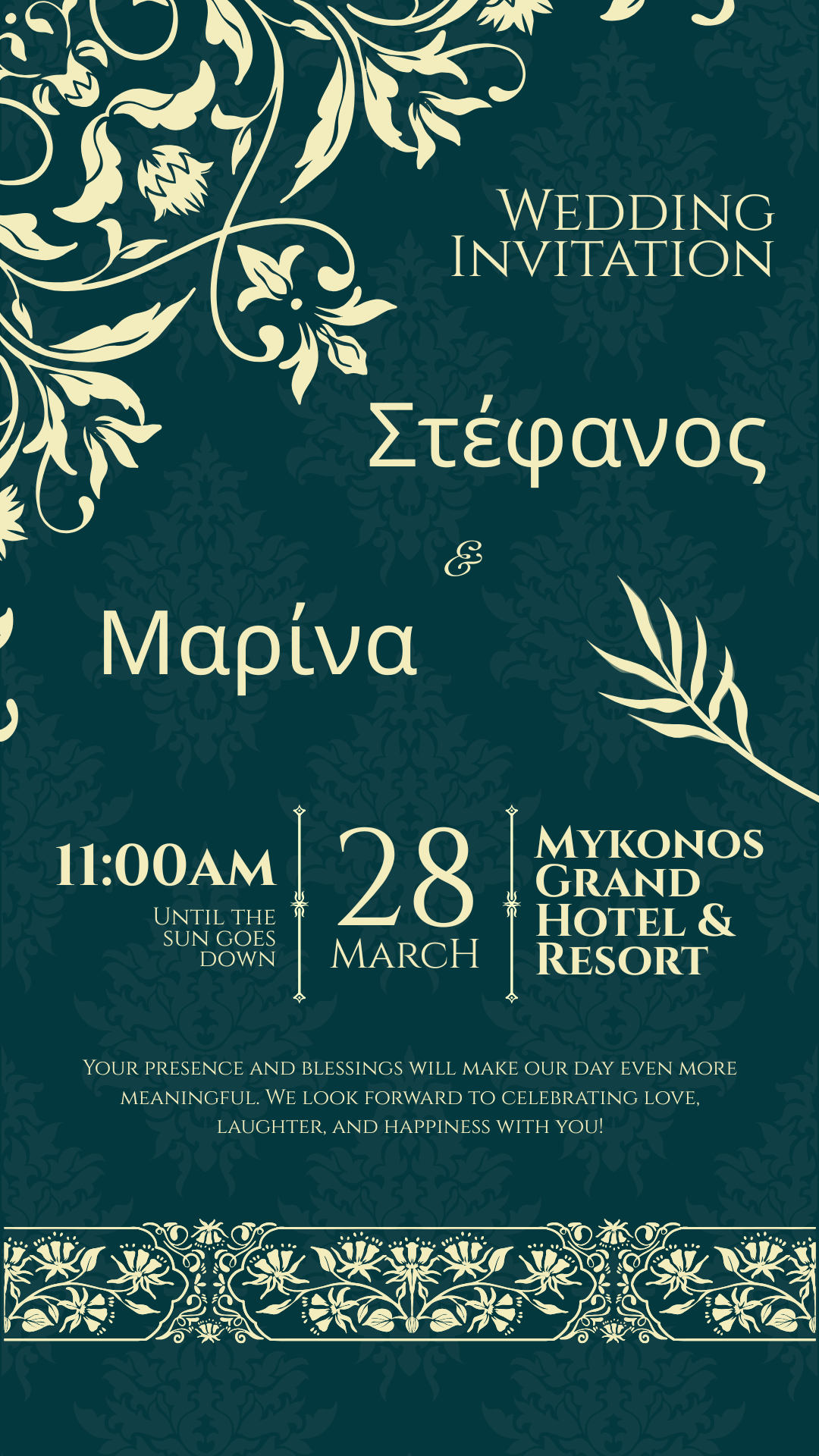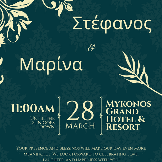 ✔ Εξατομίκευση με ονόματα, ημερομηνία, ώρα και τοποθεσία και μουσική